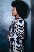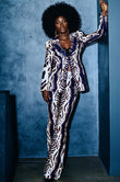 Elevate your suiting collection with our new single breasted Blazer. This sophisticated feline piece features a form fitting silhouette, notched collar, lapel and bold shoulder pads. Its versatility is endless, polish it with a dress or enhance the look with our matching high waist fitted flare pant or shorts.
