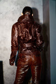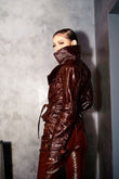 This leather jacket is made from soft, high-quality leather and features a structured biker silhouette that commands attention. A bold belt cinches at the waist for a tailored look, complemented by button closures and gathered cuffs that provide a refined touch. This piece perfectly blends edgy and classic elements, making it a versatile addition to any wardrobe, regardless of the season or trend. Pictured in a striking ochre hue.